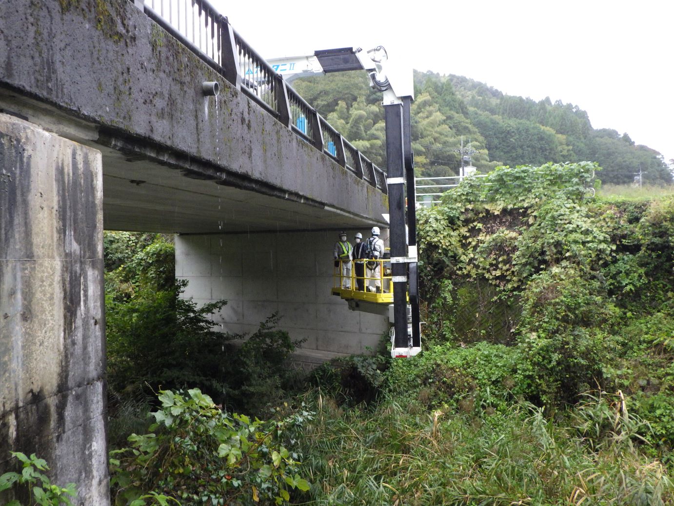 橋梁点検車に乗せていただき,点検を勉強しました.ありがとうございました.